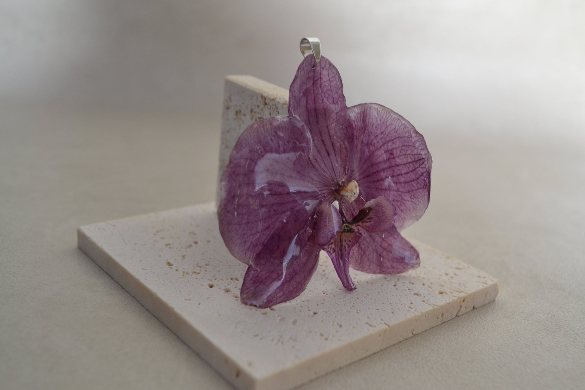 - Componente piesă: orhidee naturală, rășină și pandantiv din oțel inoxidabil