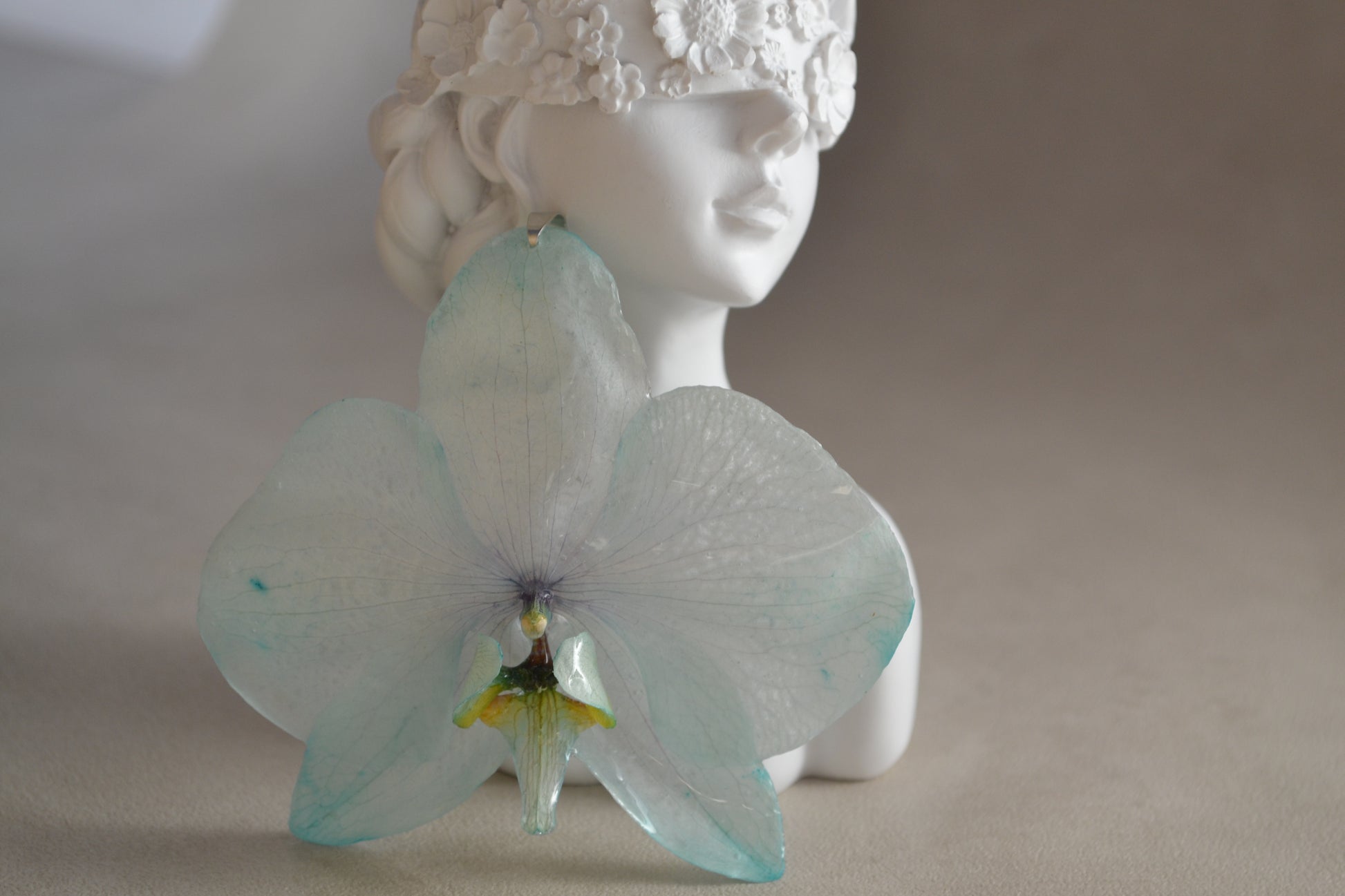 -        Componente piesă: orhidee naturală, rășină, accesoriu oțel inoxidabil