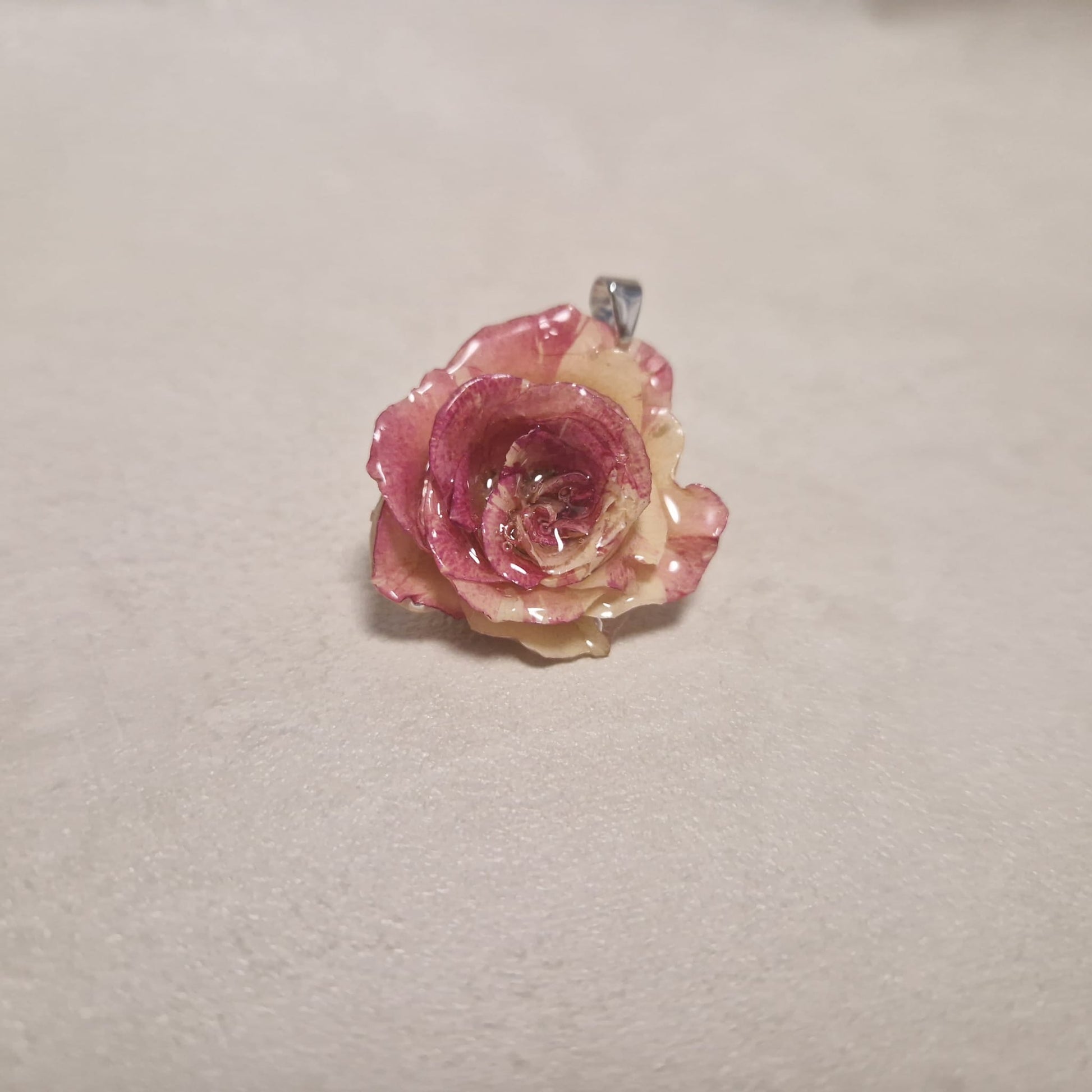 Pandantiv realizat din trandafir natural si incapsulat in rasina.